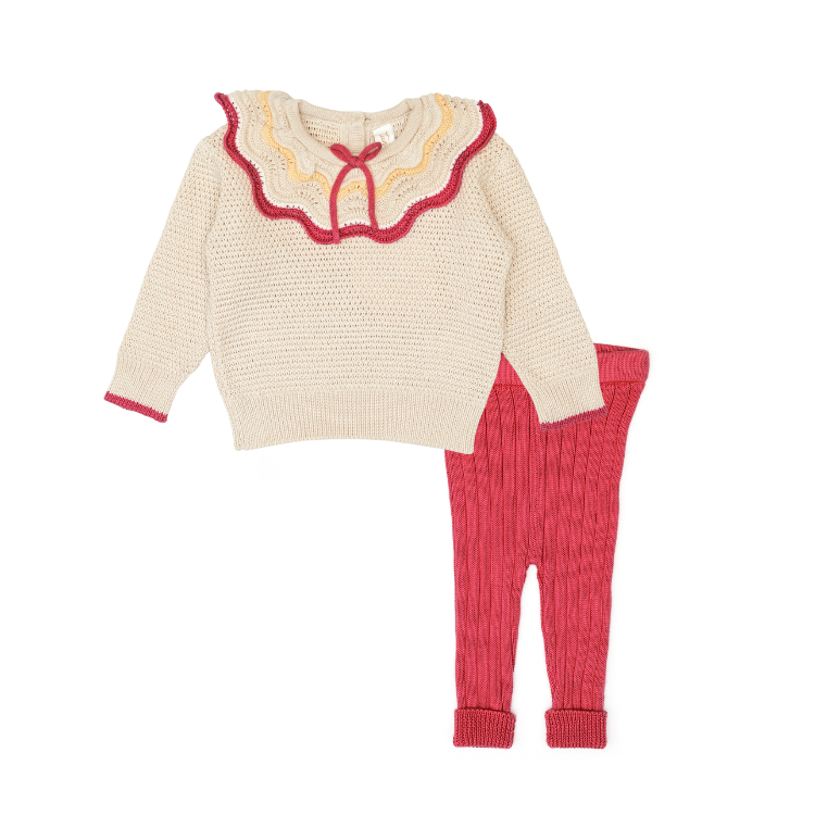 NF001OA/016RD-Multicolor Ruffle Sweater/Legging SET-Oatmeal