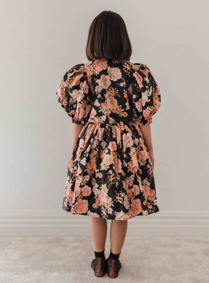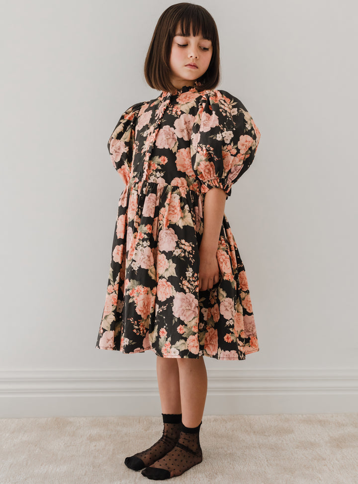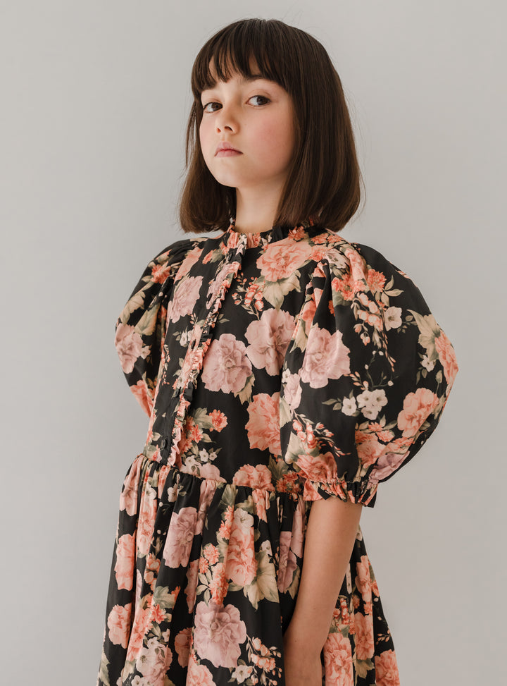 1228-Vintage Bloom Poplin Babydoll Dress-Print