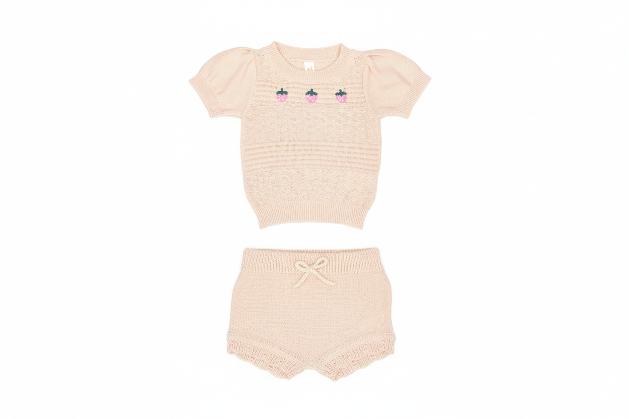 Strawberry Top and Lacy Shorts - Light Pink Red
