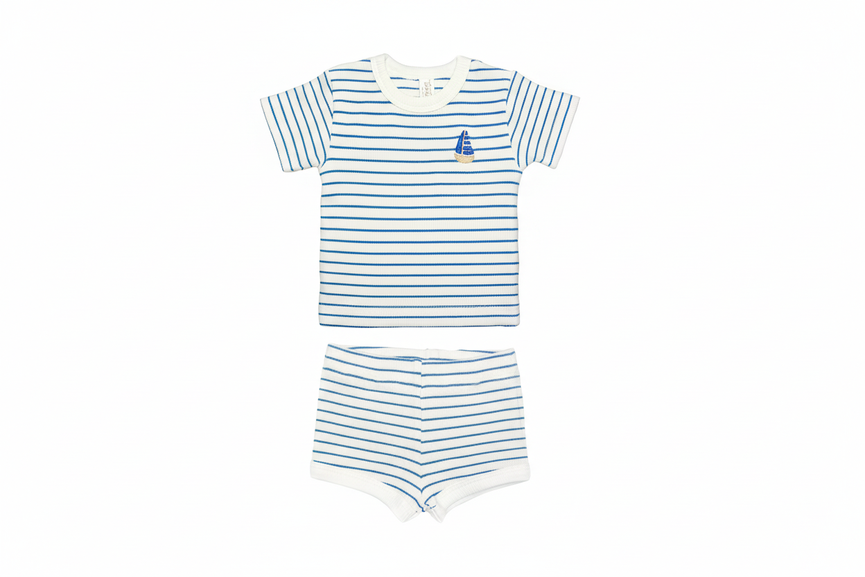 vr005/vroo7 short sleeve top/shorts set-Blue Stripes
