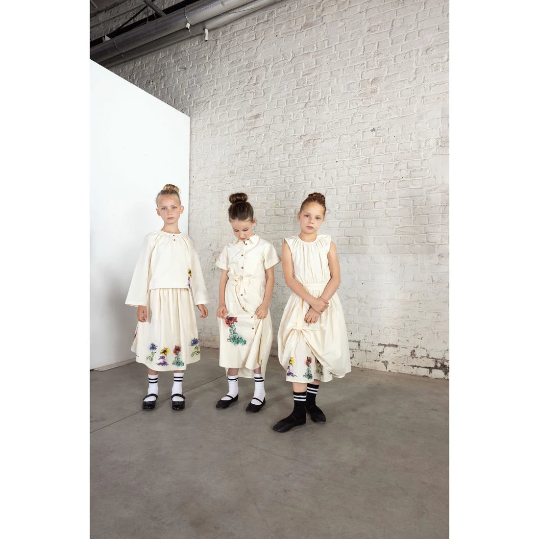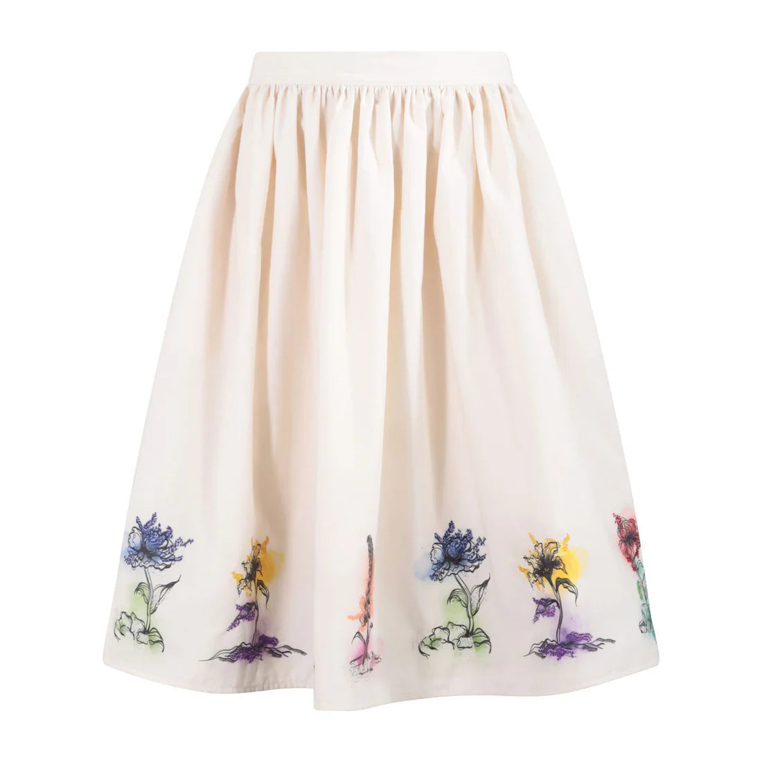 205 Gathered Skirt - White with Floral