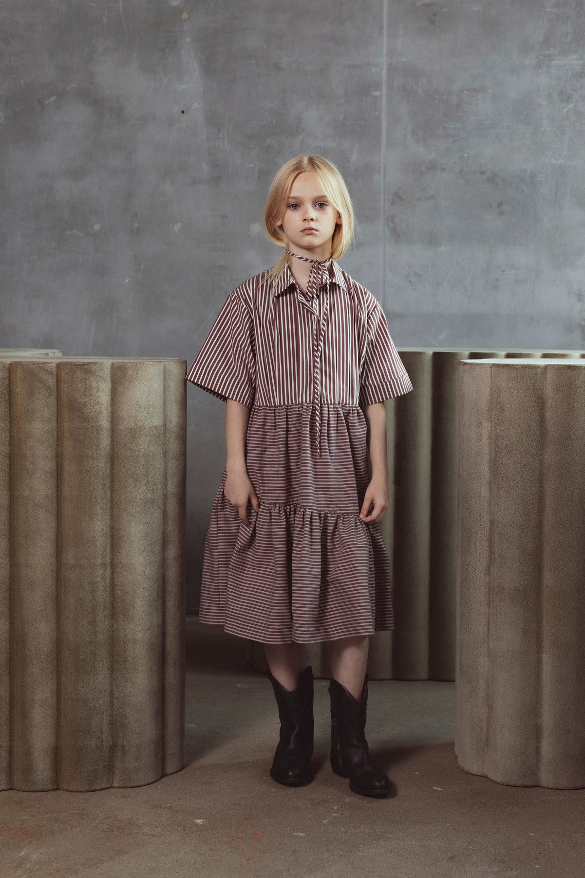 AVA DRESS-RUBY/MILK STRIPES