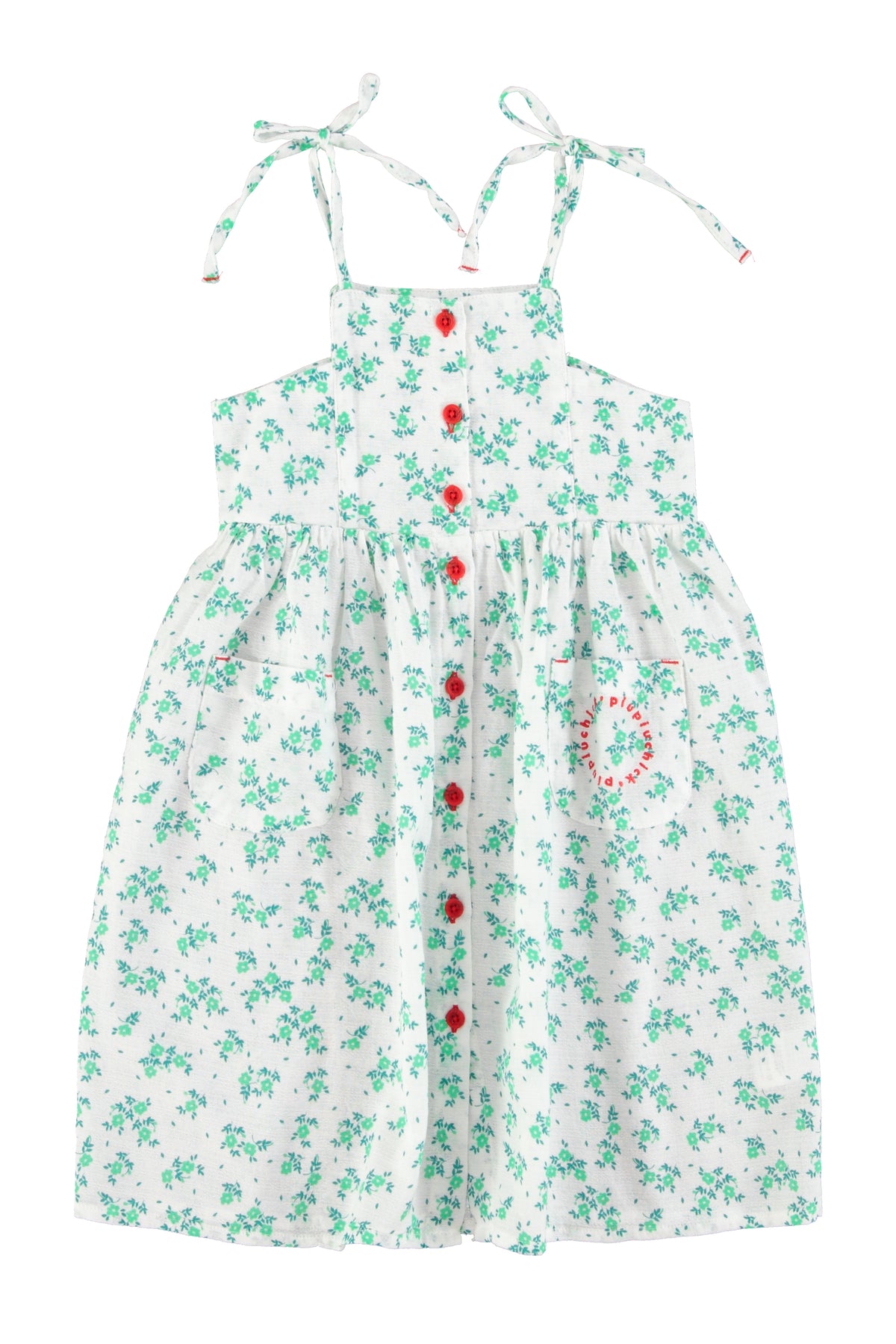 SS26.MN2614-LONG DRESS ECRU W/ GREEN FLOWERS ALL OVER
